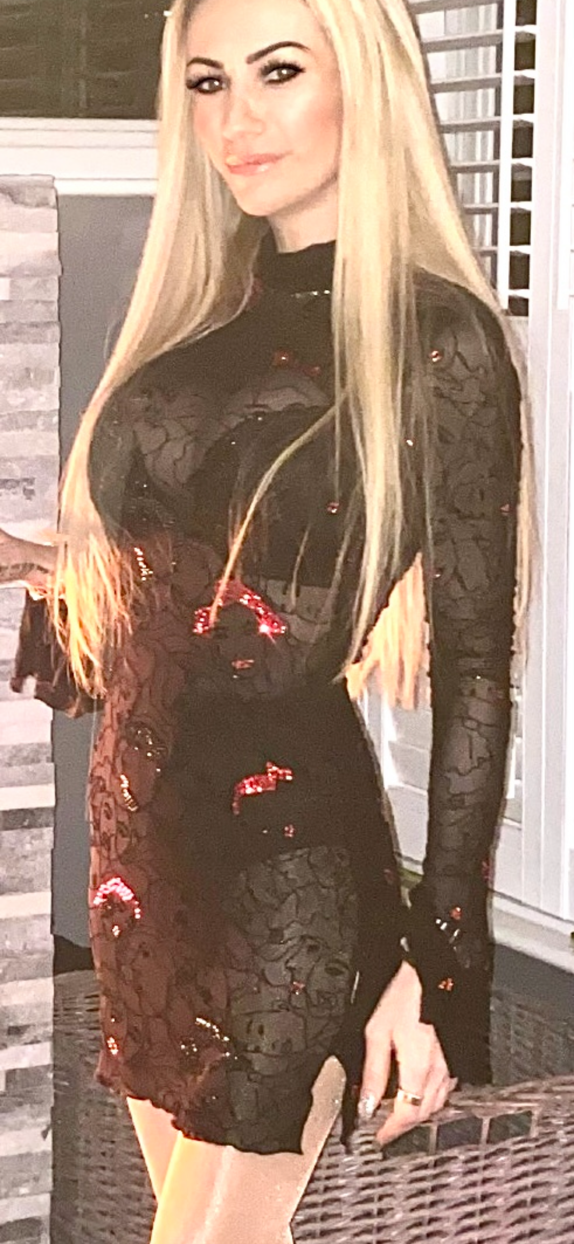 Black, Sexy, Crystal Figure Pattern, Long Sleeve, Pencil, Short, Slim Fit, Medium Stretch Dress.
