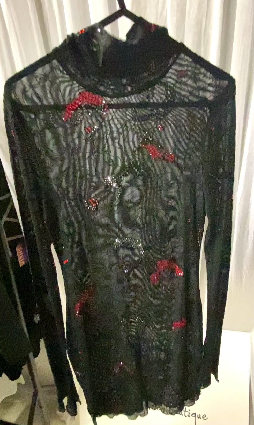 Kisser Figure Pattern Split Hem Sheer Mesh Bodycon Dress with Crystal Details
