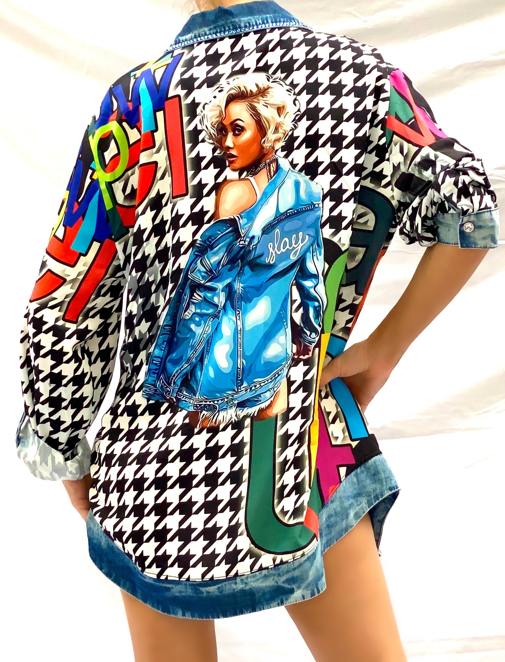Slay Shirt Dress with Sexy Crystal Buttons & Rhinestone Denim Details
