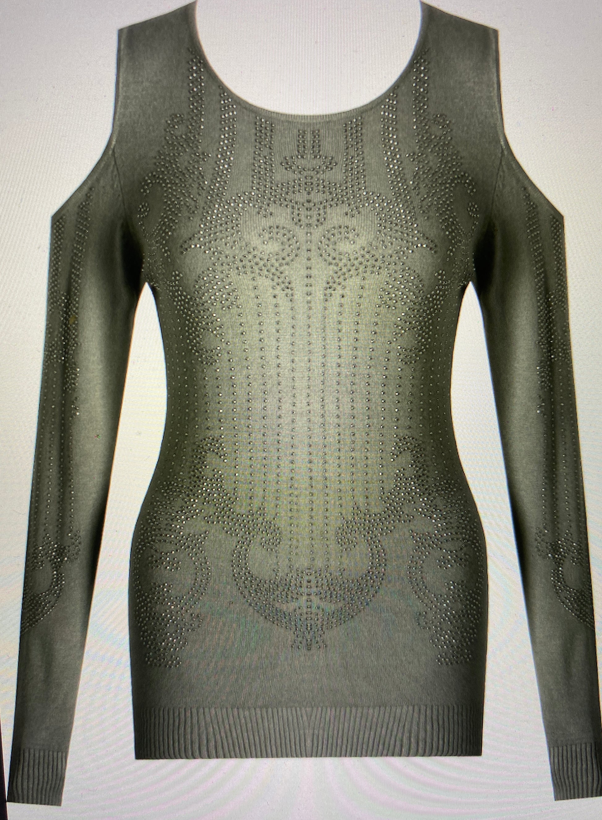 STUDDED COLD SHOULDER KNITTED JUMPER