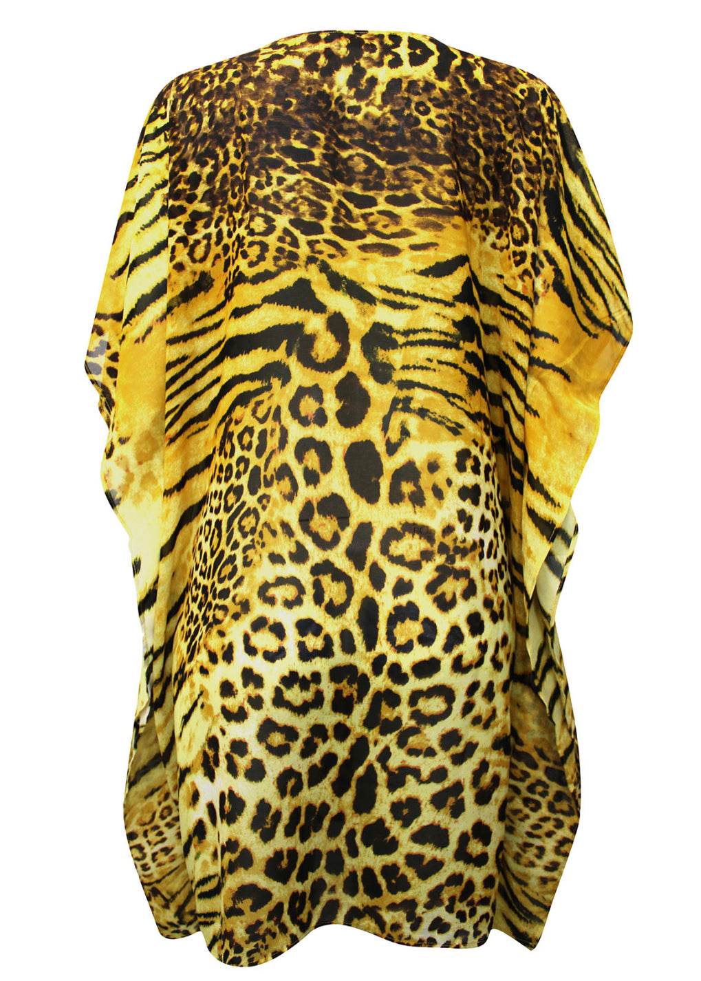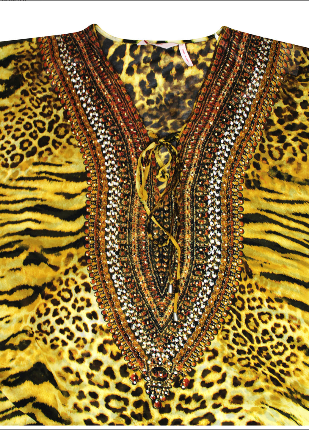 YELLOW Animal Print Rhinestone Embellished Lace Up Kaftan
